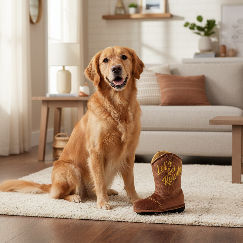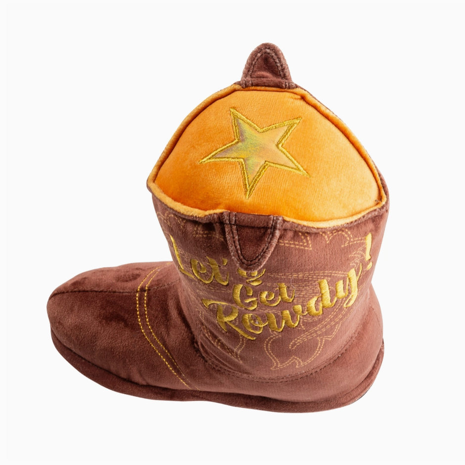 Cowboy Boot Dog Toy – Durable "Let’s Get Rowdy" Plush with Squeaker & Crackle