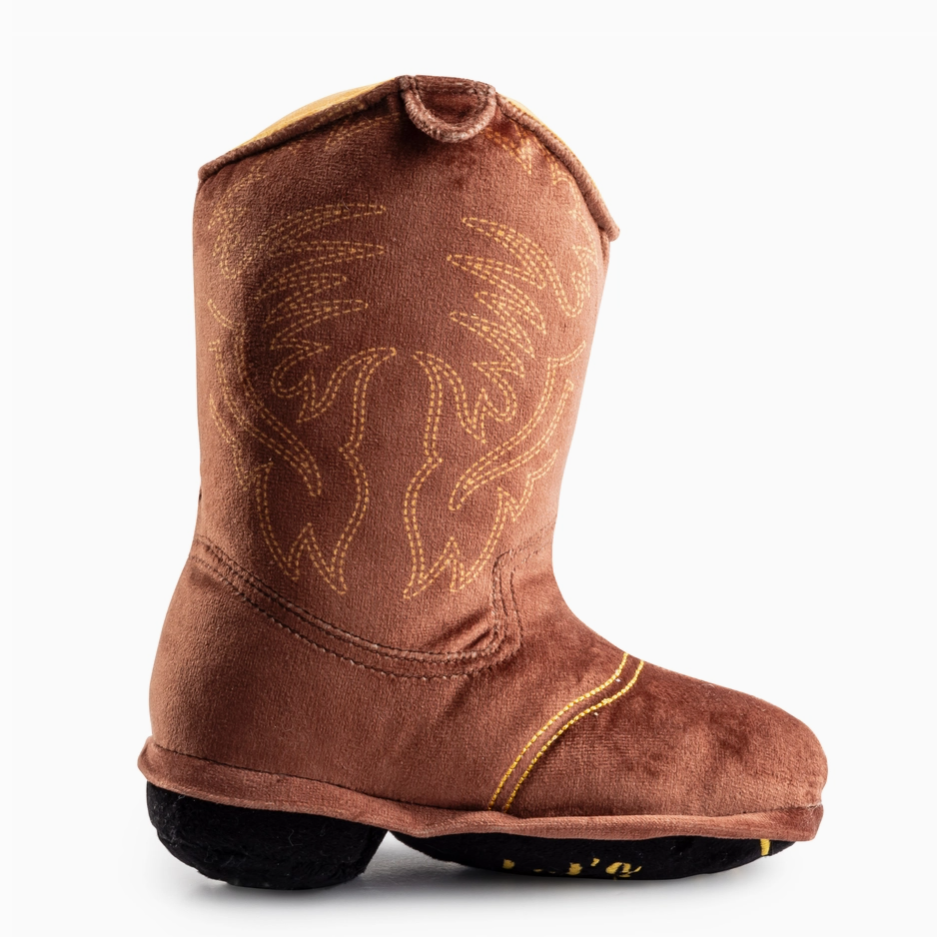 Don't let the soft plush fool you—this boot is built tough with a durable mesh lining to withstand adventurous play. To keep your pup engaged, we've packed it with both a squeaker and crackle material for the ultimate sensory experience. Whether your dog is a tiny cowpoke or a big trail-blazer, this rugged boot is the perfect addition to their toy chest.
