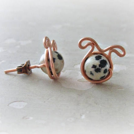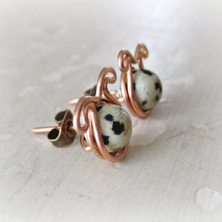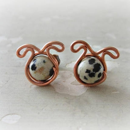 Dog lovers, meet your new favorite earrings! These charming dog stud earrings are a paw-some jewelry piece you can put on and leave on day after day. Light and comfortable to wear all day every day, they are handcrafted and formed with solid copper wire. Featuring beautiful jasper stones, they bring a playful touch to any of your outfits. The sweet and simple design makes them suitable for both casual and formal occasions. Pair them with anything from a cotton tee to a dressy blazer - you don't even have to take them down when you slip on your PJs!