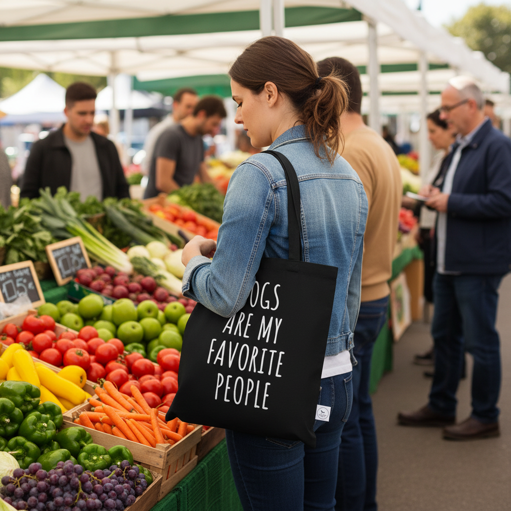Let’s be honest—sometimes the best company has four legs and a wagging tail. Our Dogs Are My Favorite People Tote Bag is the ultimate accessory for the dedicated dog lover. Featuring a bold, minimalist white-on-black design, this tote makes a statement wherever you go, from the farmer's market to the dog park.