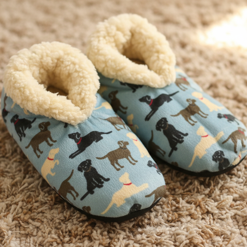 Relax with your favorite loyal companions at your feet. These Labs Print Slipper Socks are designed for ultimate comfort and feature a charming all-over pattern of chocolate, yellow, and black Labs. Perfect for the Lab mom who wants to stay cozy while showing off her breed pride.