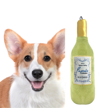 Whenever it's wine o'clock, let your fur-ever friend join in on the fun with this hilarious wine dog toy. Mimicking the unmistakable Cupcake wine design, this wine bottle dog toy is the perfect shape for chewing and carrying around. Equipped with a squeaker and made of soft plush fabric, it is the uti-mutt photo prop for selfies and funny dog videos. A great way to share your favorite beverage with your favorite friend, it is perfectly sized for medium and large sized dogs.
